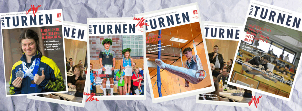 „Unser Turnen“ erscheint 6x jährlich im Zweimonatszyklus. In „Unser Turnen“ findest du eine Vorschau und Berichte zu ÖTB Veranstaltungen, Artikel zu ÖTB relevanten Themen, Wissenswertes aus unserem Verband und Interessantes aus den Mitgliedsvereinen.